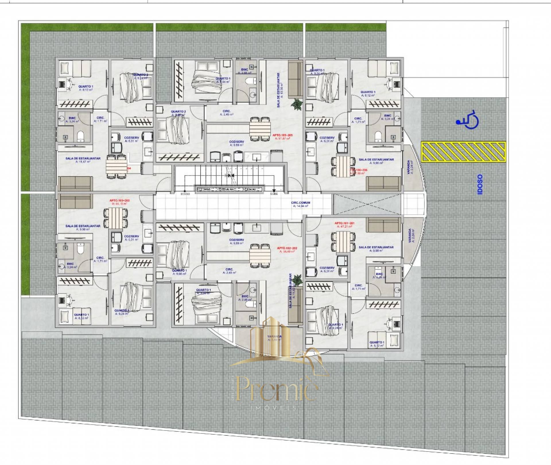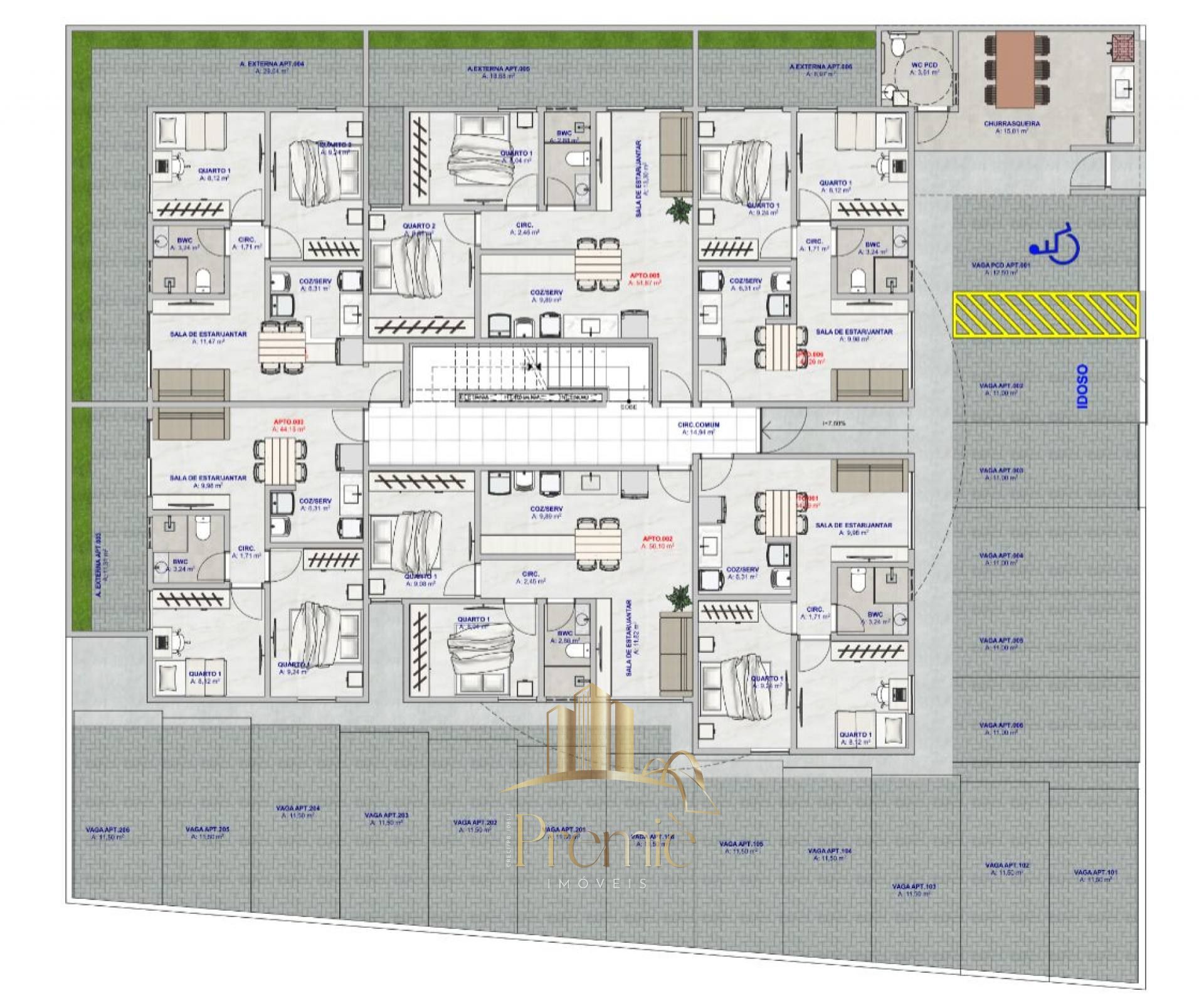Área Privativa: 44.00m²